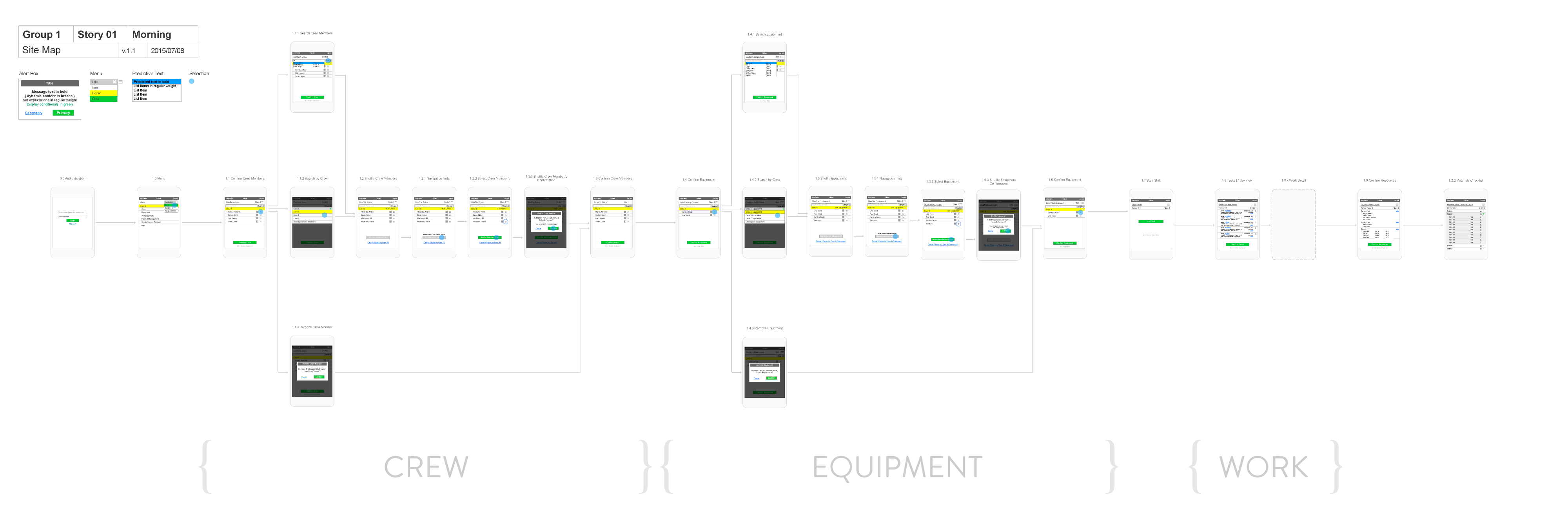 The UI controls had to handle a broad spectrum of use cases—from fleets of vehicles working on dozens of projects every day with a mix of full time employees and contractors that changed multiple times a day, to emergency crews of subcontractors called in at the last minute with no clear direction, to airborne teams of two working on 2-3 projects a year tracking project details on a touch screen interface while flying helicopters without looking at the screen.