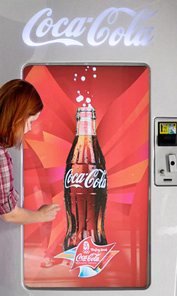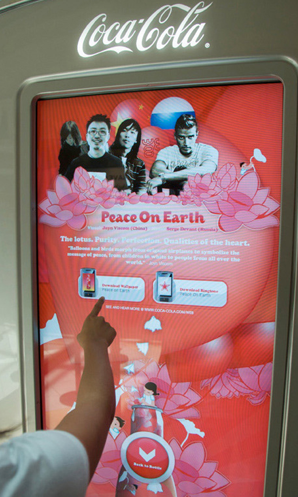 The large format U-Vend platform was introduced at the Olympics in China, allowing VIPs to download custom screen savers and ringtones via bluetooth.