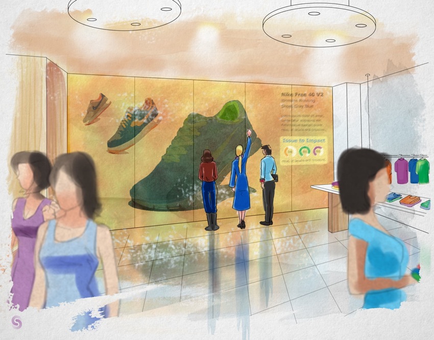 Starting with quick sketches to get everyone moving in the same direction, I used a loose watercolor style to incorporate UX designs into the existing physical environment. Finally, I designed and animated interface designs into the watercolor in Adobe After Effects.